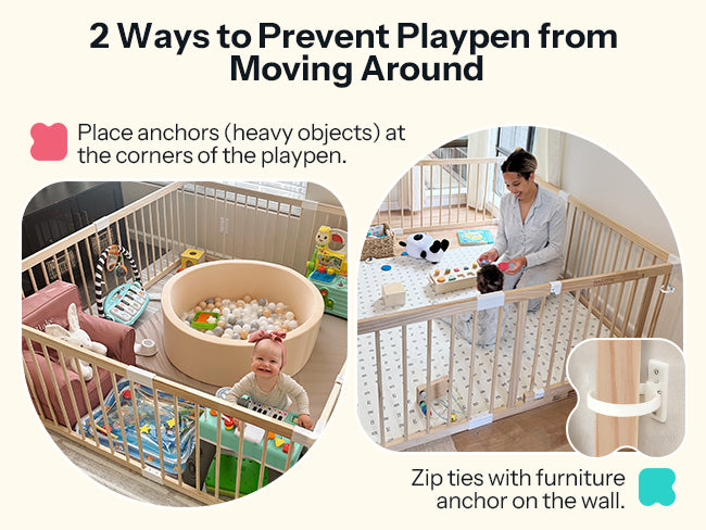 - If you have hard floors, placing a non-slip mat or rug underneath the playpen can offer extra grip and prevent sliding.