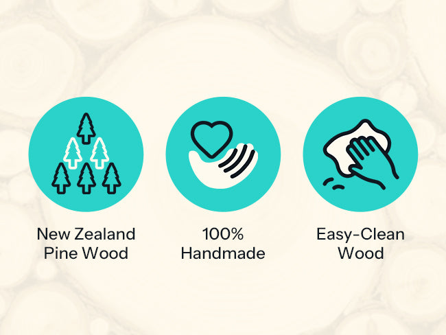 Made with responsibly sourced New Zealand pinewood from well-managed forests and certified under the FSC® MIX label (FSC® C216180). The materials are handcrafted with an almost glue-free construction, offering a safe, non-toxic, and durable play area for children. |