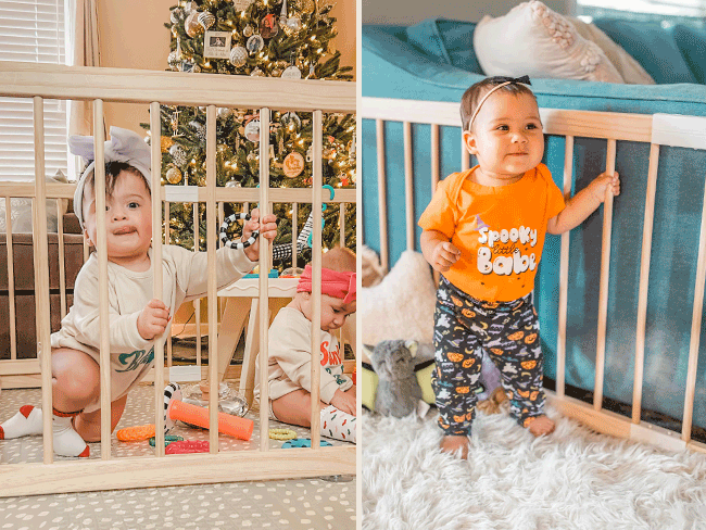 At 24” tall, Grovi keeps your baby safely inside while still letting them pull up and peek out. With bars spaced just right, little fingers can grip and balance as they learn to stand. Perfect for babies from 6 months to 2 years.