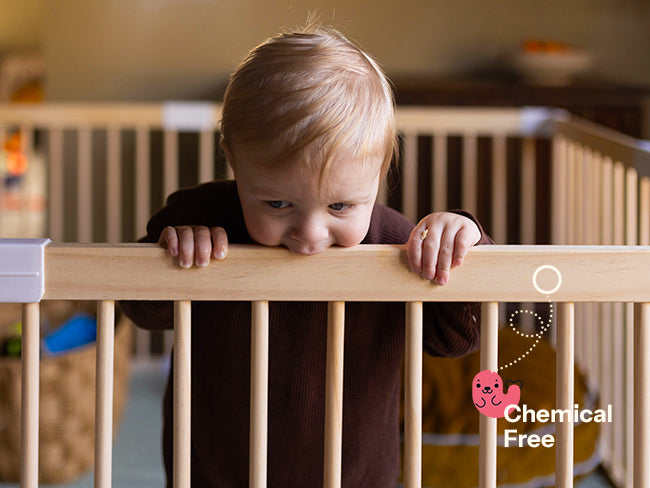 For teething discomfort, we recommend guiding your baby to use a teething toy instead, as it is safer and more effective for their gums — and helps protect the playpen’s finish as well.