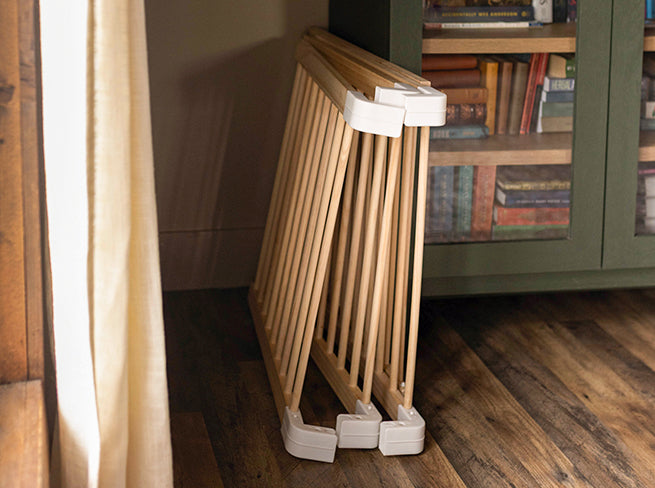【Easy for You, Beautiful for Your Home】Quick to assemble and easy to move, Grovi’s portable, foldable design fits perfectly in small spaces and complements any decor with its clean, natural aesthetic. No tools required — just unfold, secure, and you’re ready to go. To store, simply detach the connectors. The child-proof locking gate adds another layer of safety and convenience.
