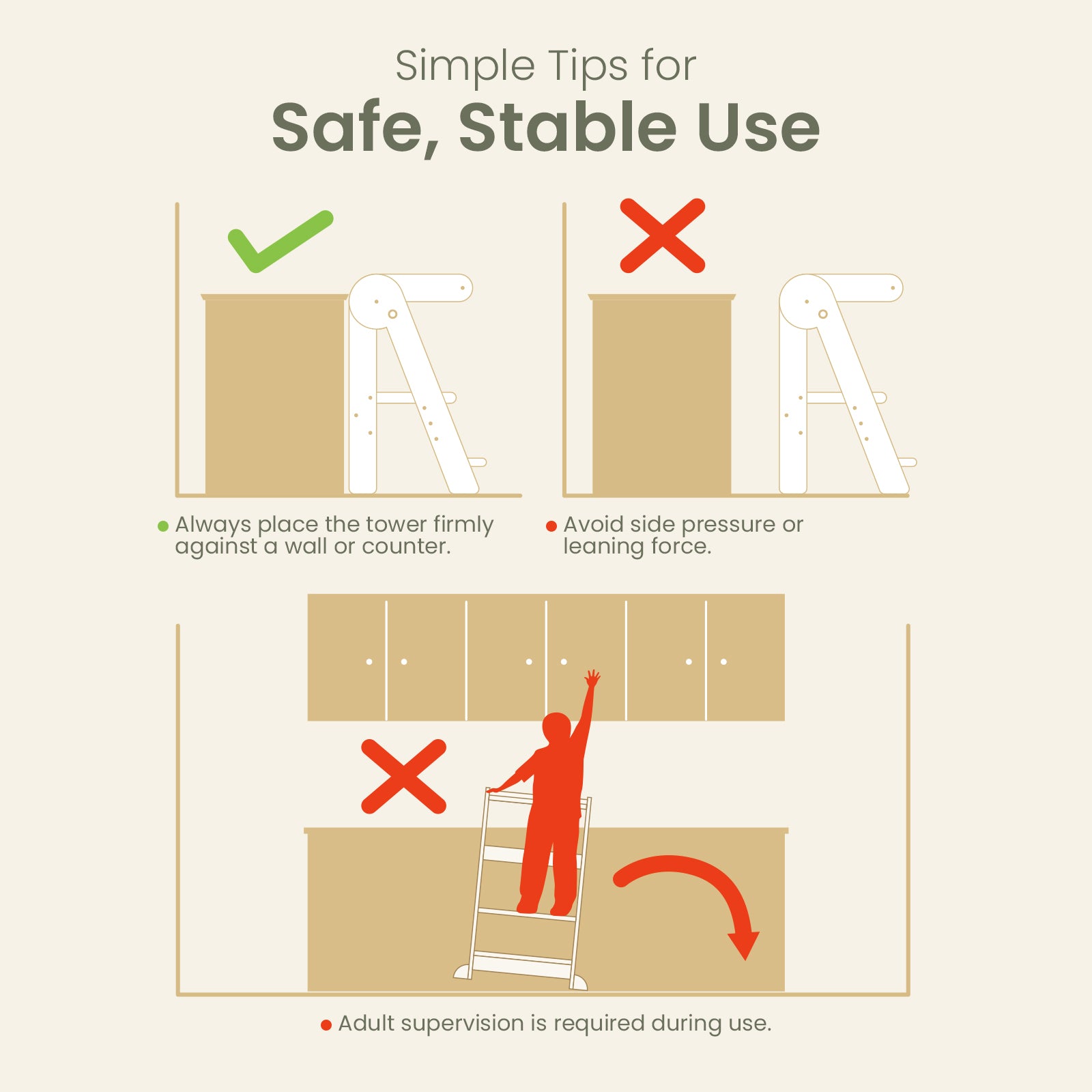 - Encourage your child to treat the tower as a “helper station” rather than a “jump zone” — making mindful use helps build safe habits.