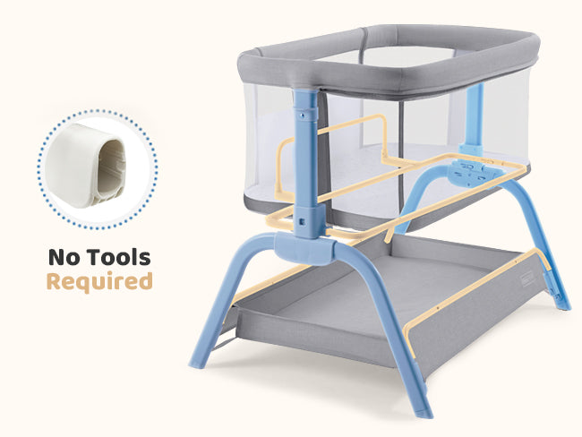No, this model doesn’t have a rocking or sway function. It’s built for steady, stable sleep—ideal for parents who prefer a non-moving sleep surface.