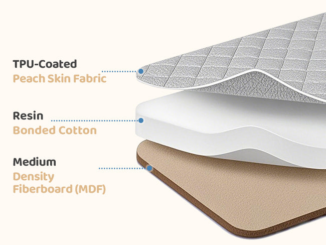 Firm for support, soft for sweet dreams. Made with resin cotton and medium-density fiberboard for stable, comfortable support, plus a water-resistant TPU peach skin cover.