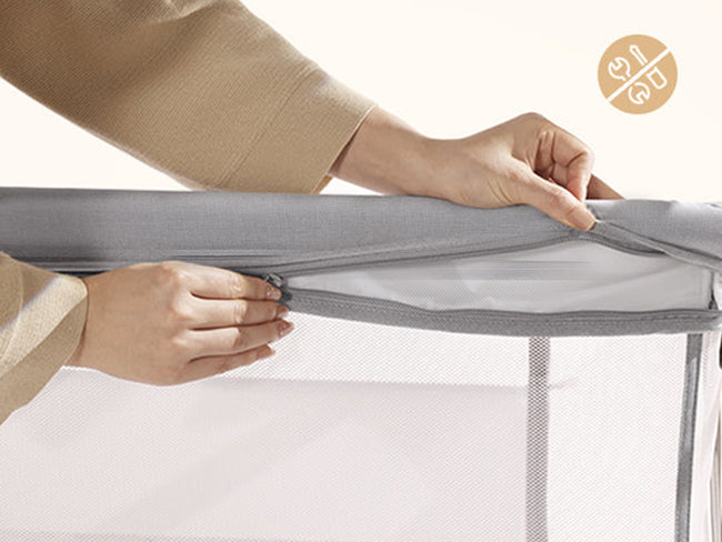 Keep an eye on baby any time, day or night. The full 360° mesh lets air flow freely, keeping baby cool while the reinforced sidewalls ensure a safe and stable space.