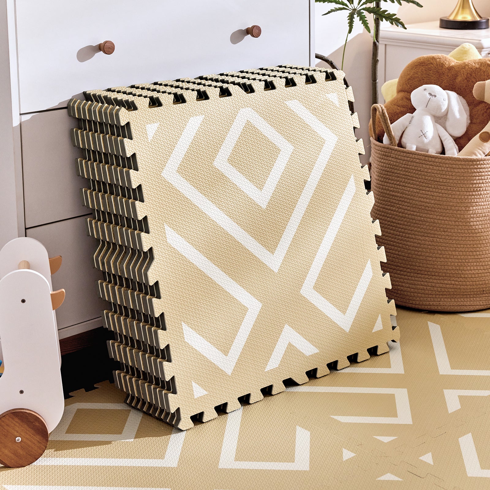 Each tile measures 2' × 2', so it’s easy to build a small play area now, then expand as your space (and little one) grows. Great for living rooms, playrooms, and shared family spaces.