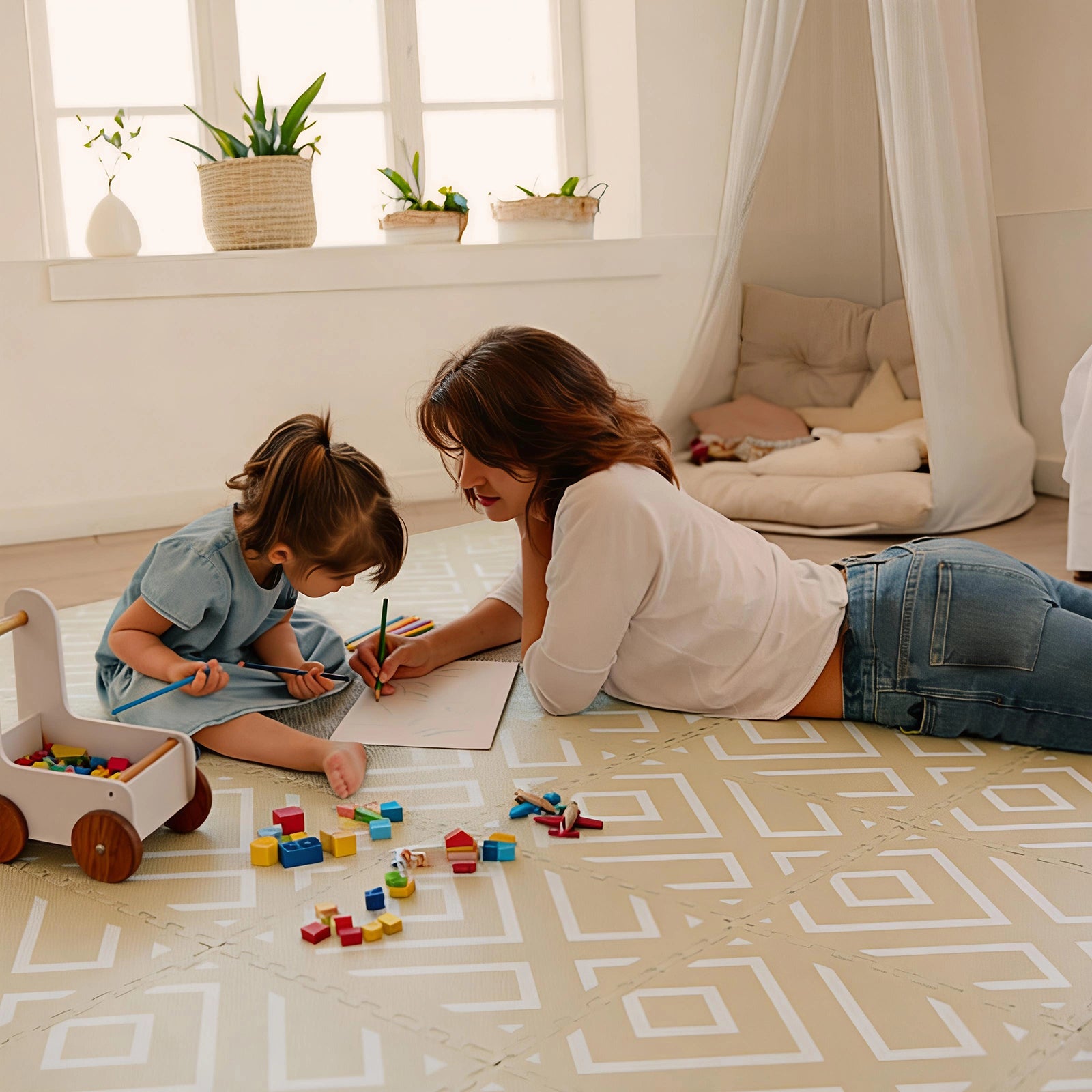 【Made to Fit Real Homes】With soft neutral tones and a calm geometric pattern, Aria fits naturally into living rooms, nurseries, and shared family spaces. It does not feel like a temporary play setup. It feels like part of your home, ready for the small, playful moments that happen throughout the day.