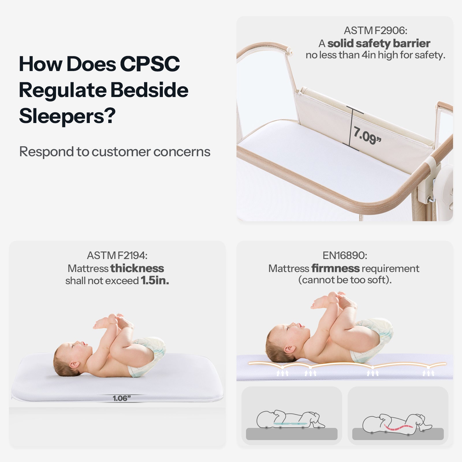 Yes. The Cuddly Signature meets all ASTM and CPSC safety standards for bedside sleepers. It’s built with a sturdy iron frame and secure anchor straps so you can safely keep your baby close through the night. The fully breathable mesh and airflow mattress also help reduce overheating for a safer, calmer sleep.