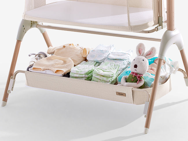 You’ll receive the bassinet body, 4D airflow fiber mattress, washable cover, storage basket, and two safety straps for secure bedside attachment. Everything you need — no extras to buy separately.