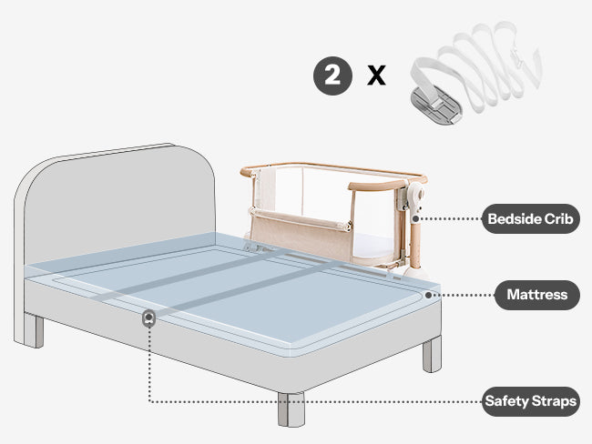 Two fixed safety straps connect securely to your bed, keeping the bassinet safely in place for co-sleeping peace of mind.