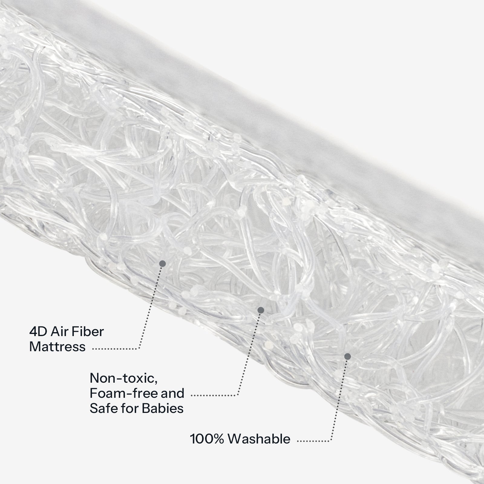 | Mattress Core Material | 4D Airflow Fiber core (foam-free, washable) |