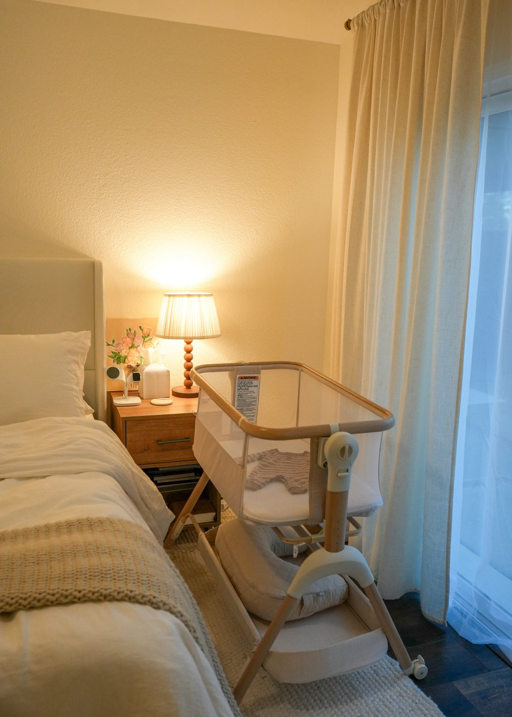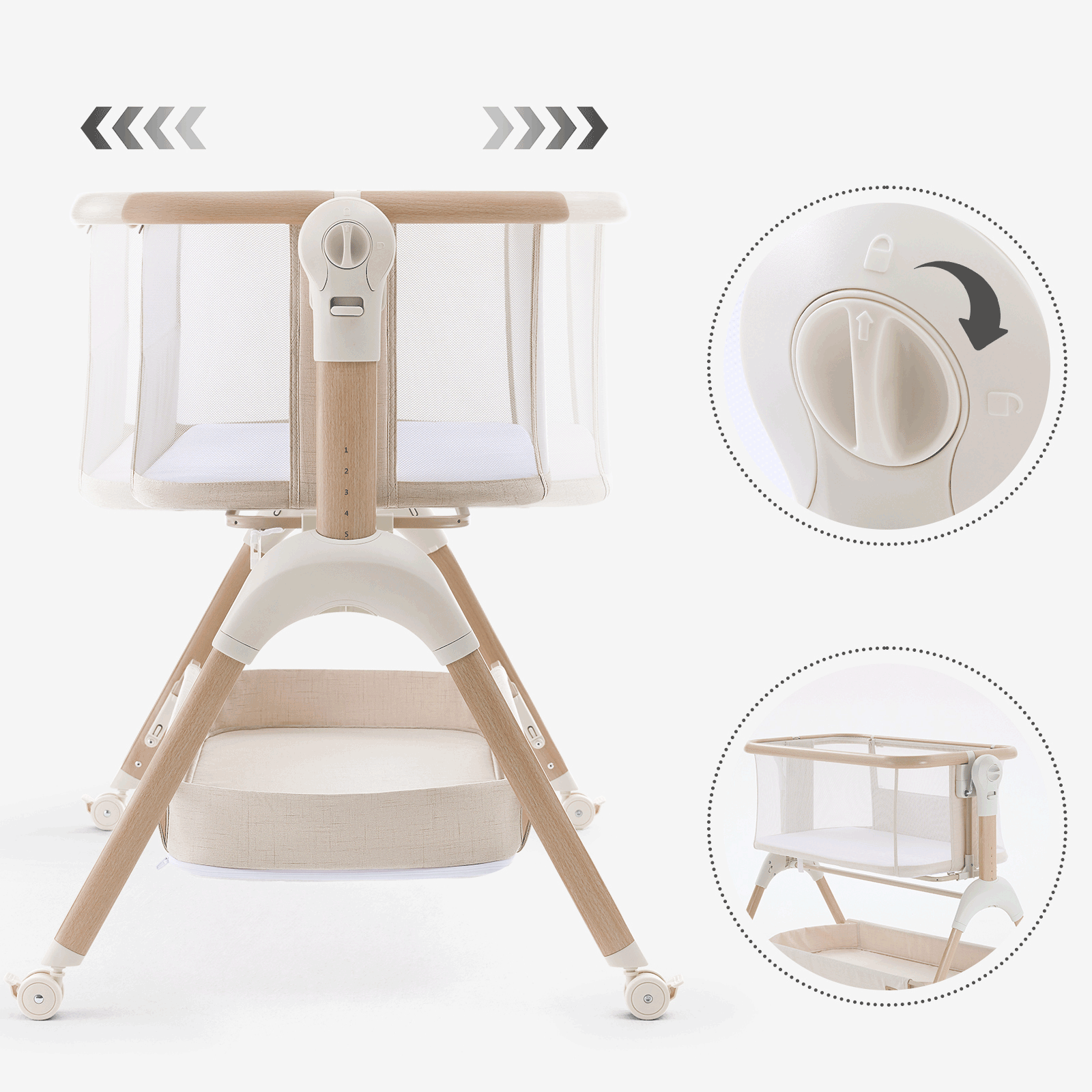 Use it as a bassinet, bedside sleeper, or gentle rocker — switching between spaces takes just a few seconds.
