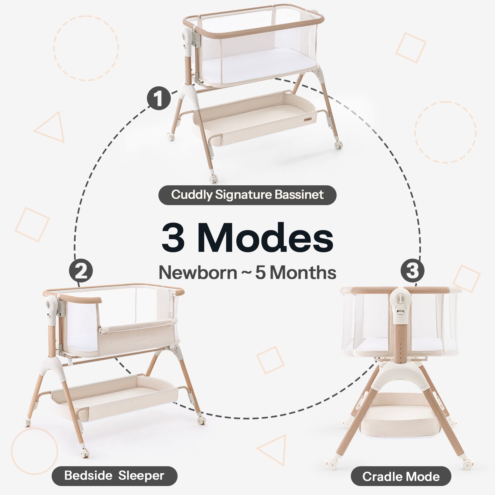 | Modes of Use | 3-in-1: Bassinet / Bedside Sleeper / Rocking Mode |