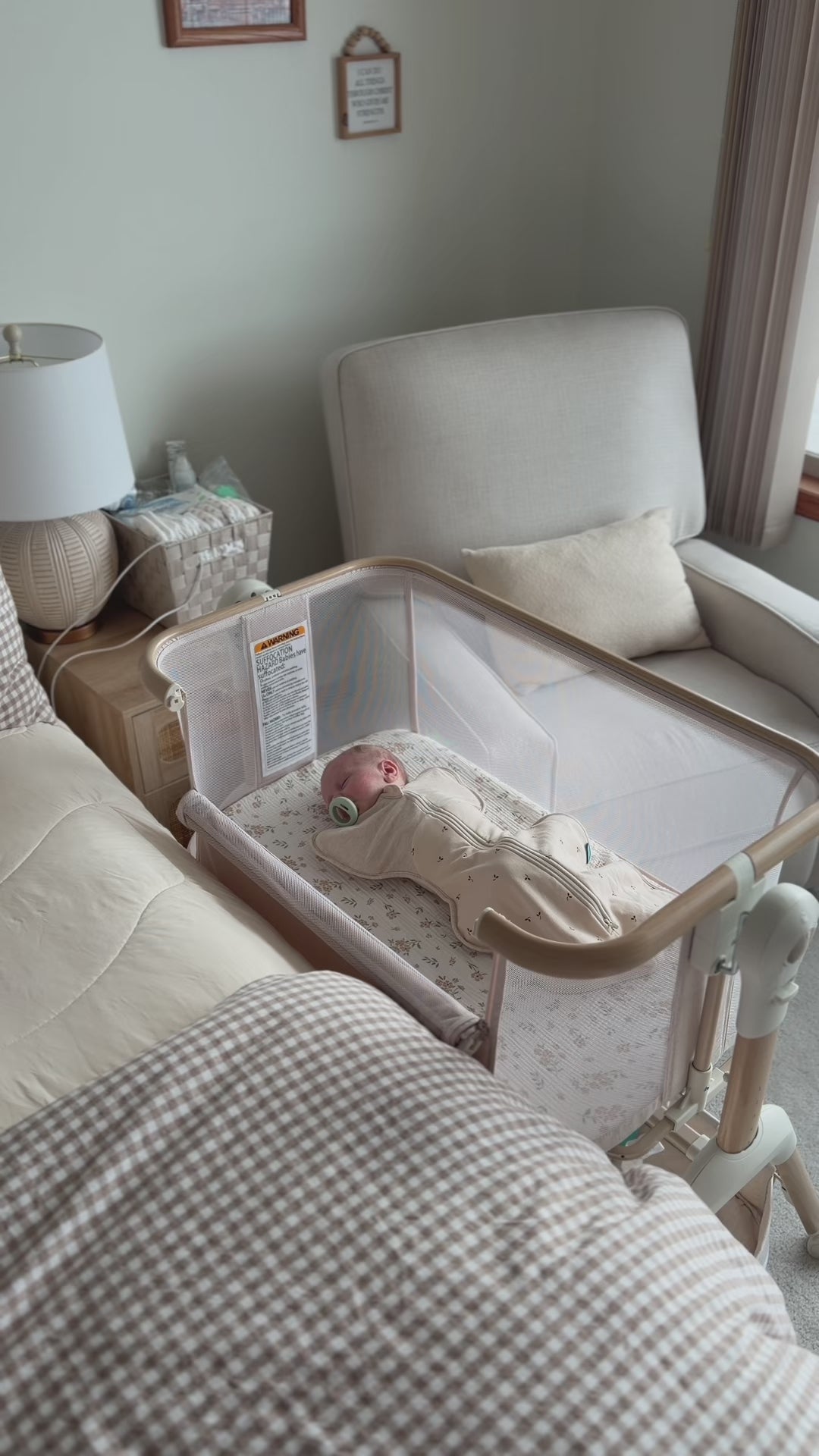 It’s designed for newborns up to 5 months old (or 9 kg / 19.8 lbs), until your baby starts to push up or roll over on their own. It’s perfect for those early months when you want your baby right beside you for every feed and nap.
