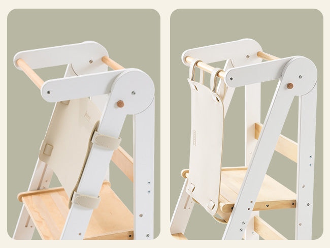 【Sit and Stand in Style: Kids Tower for Various Scenes】 The HARPPA Nordi Foldable Toddler Tower is designed to offer both sitting and standing options, allowing the baby to be comfortable in either position. Whether it's in the kitchen, bathroom, or study room, it caters to the baby's needs, making them feel valued and engaged in each setting, while boosting their confidence and sense of achievement.