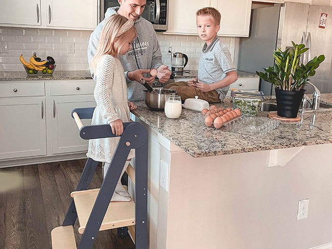 Whether they're sitting down with a book or standing to help, this Nordi tower provides your active kids with a practical spot to join in family activities.