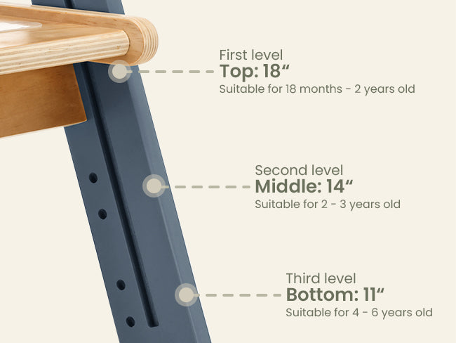 - Level 3: Suitable for children aged 18 months to 2 years old, with a height of 11 inches.
