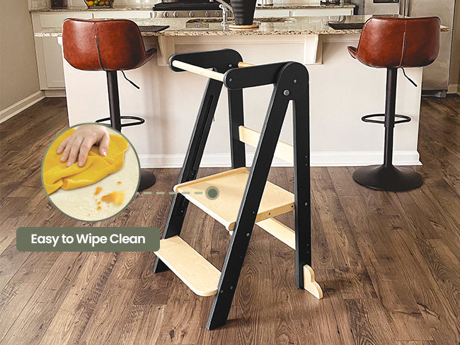 【Portable and Foldable, Easy to Clean】Tight on space? No problem. Nordi folds flat for easy storage, giving your home a tidier look when not in use. Whether it’s by the counter, sink, or desk, this foldable toddler tower for small spaces keeps your child close while keeping your space uncluttered. Cleanup is a breeze — just wipe and go.