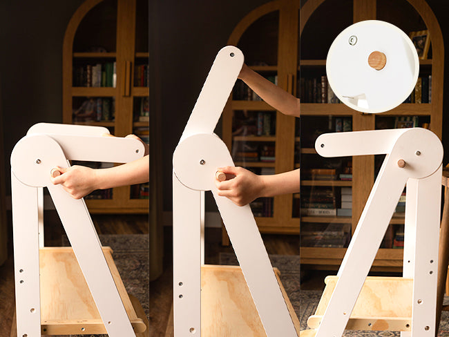 Designed for growth, our HARPPA Nordi kitchen learning helper tower adjusts to match your child's pace from 18 months to 6 years, with three adaptable heights: 11", 14", and 18".