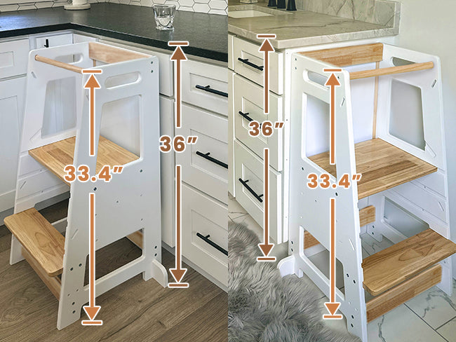 Grow with ease! The Nordo Tower adjusts to three heights — 17.1", 13.5", and 9.8" — making it perfect for toddlers as they grow from 18 months to 6 years old.