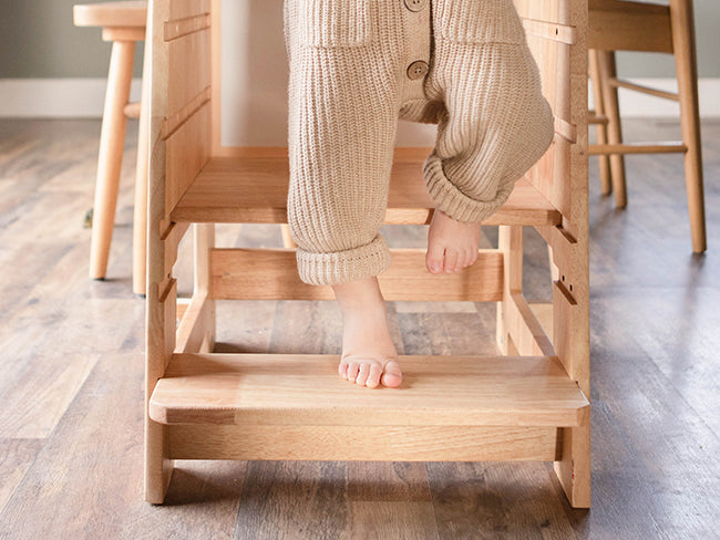 The built-in anti-slip strips are located on each step to provide extra grip and stability for your child while they climb or stand. This ensures a secure experience, giving parents peace of mind.