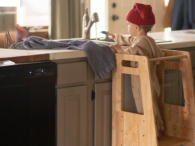 Our HARPPA Nordo toddler kitchen tower is perfect for toddlers aged 18 months and up, and can even be introduced to 1-year-olds when they’re ready!