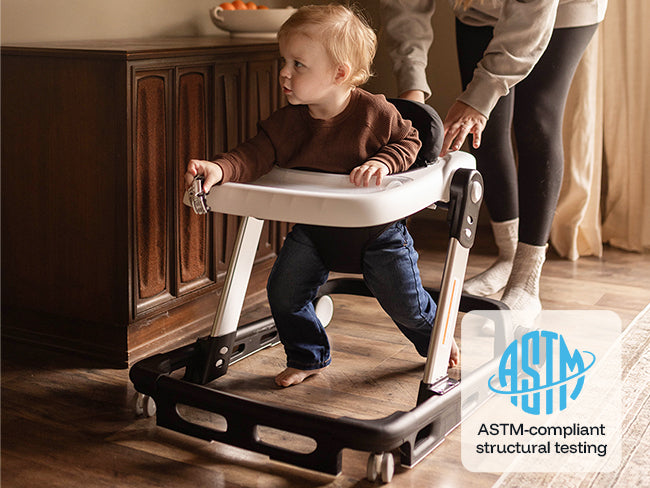 Simply adjust the rear frame position and allow your baby to stand behind the walker. The process is tool-free and takes just a few steps.