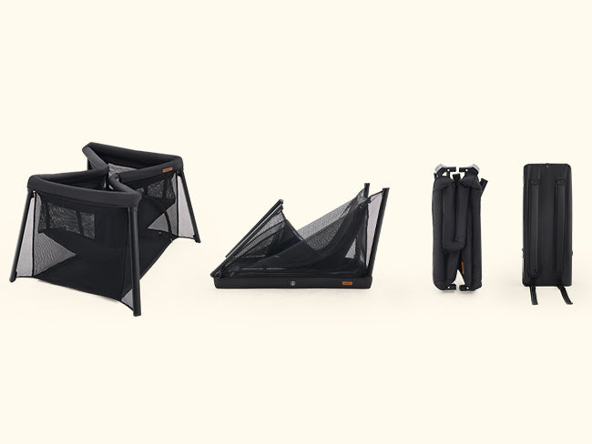 Designed to fold smoothly and effortlessly, the Rossi travel crib packs away in seconds and sets up just as easily—so you can spend less time handling gear and more time enjoying calm, comforting moments with your little one.
