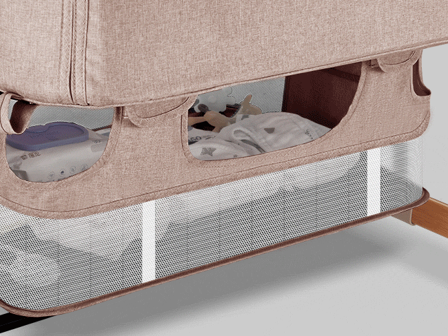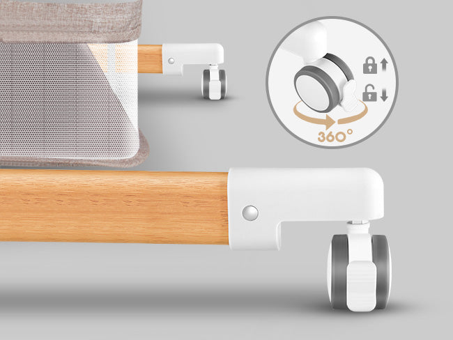 Designed with nursing mothers in mind, the bassinet's easy-access side zipper and 360° swivel wheels make nighttime care smoother, ensuring babies are quickly and easily tended to.