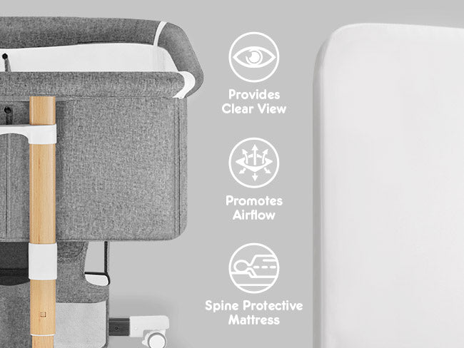 The bassinet comes with a spine-protective mattress that supports your babies' growing bodies and provides a snug, comfortable sleeping space.