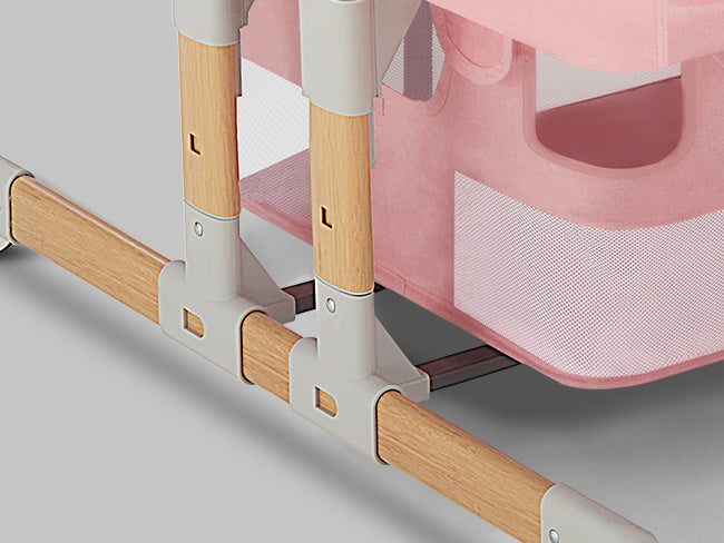 The bassinet's frame is crafted from premium wood-grain aluminum, offering a lightweight yet stable structure that is easy to move and adjust, making it perfect for nursing and feeding.