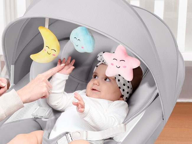 【3 Plush Toys】Spark your baby's imagination with the magical celestial plush toys on the swing's toy panel. Watch as they become captivated stargazers, lost in a world of wonder and awe.